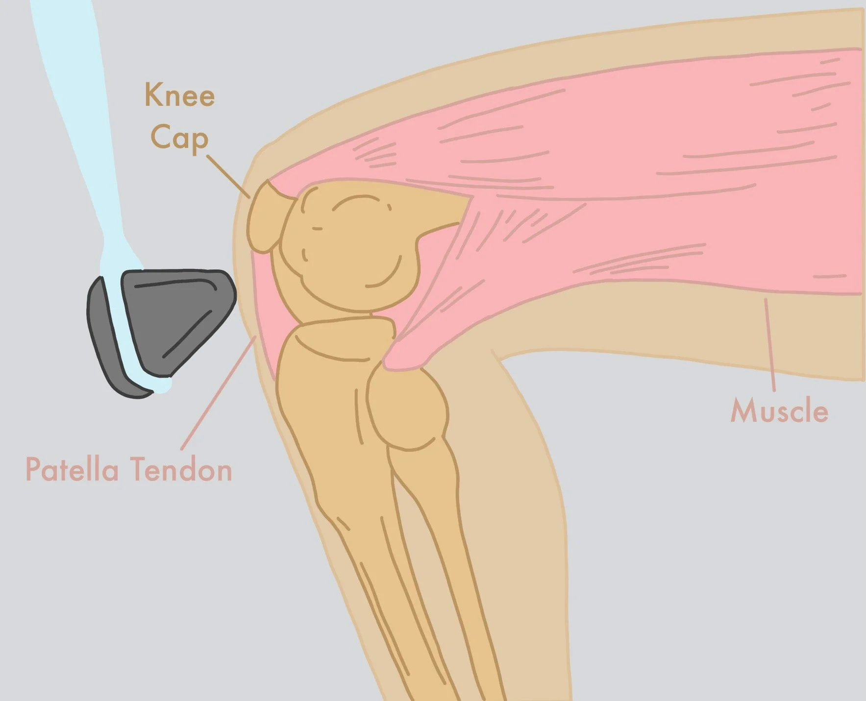 The patella is a tendon in your knee, located right under your knee cap (the hard circular bone located at the front of your knee). When the doctor taps your patella, it stretches the tendon and the muscle that it is attached to. This stretching sends a signal to the spinal cord, which responds by contracting the muscle. This contraction causes your foot to kick out.